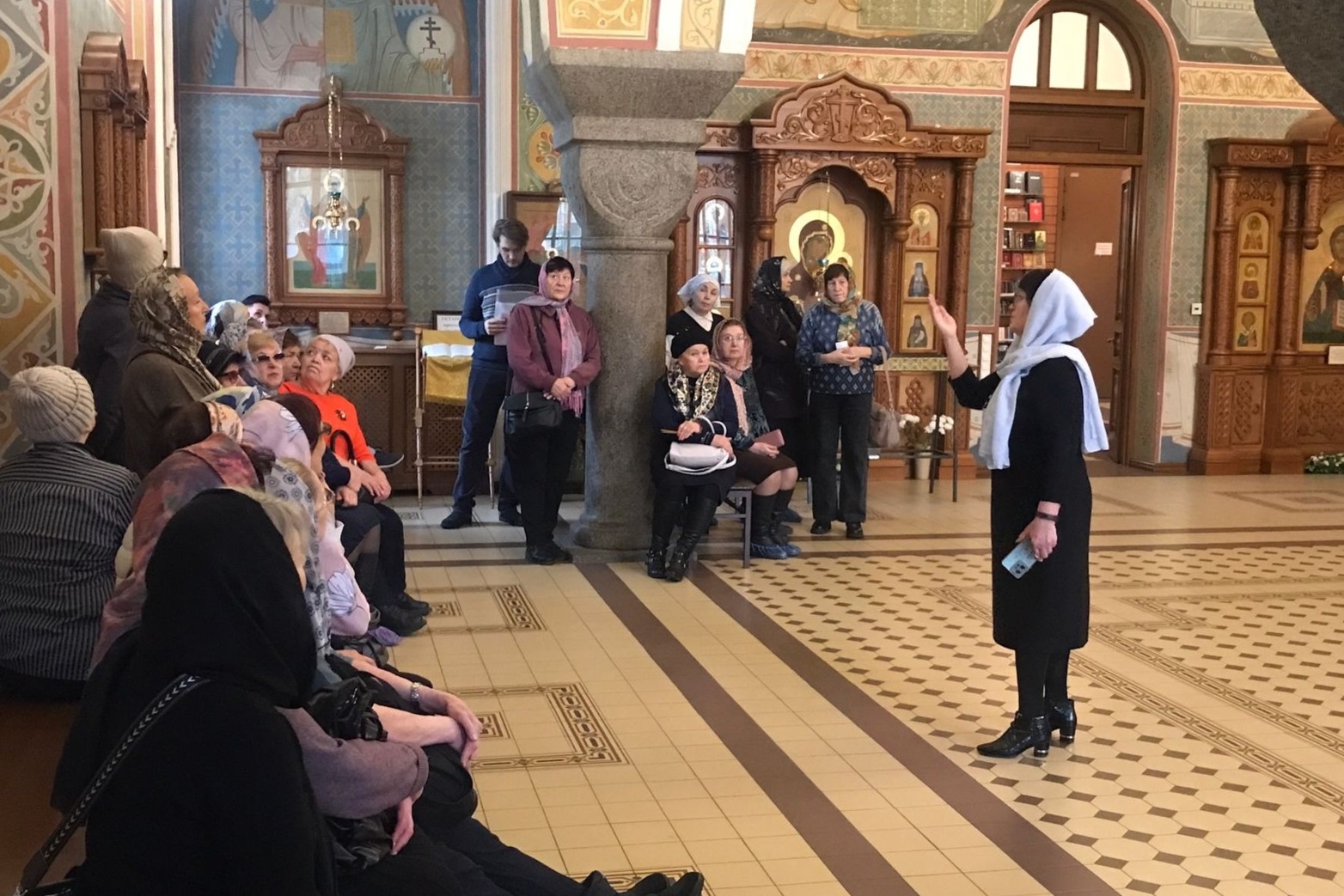 Программа началась в храме Иоанна Предтечи, где заведующая приходской библиотекой Ирина Колосова провела для группы обзорную экскурсию. Участники смогли приложиться к местным святыням, а также приняли участие в беседе о вере и церковных традициях.