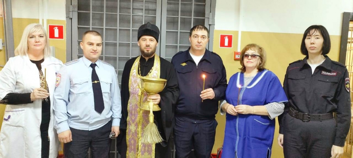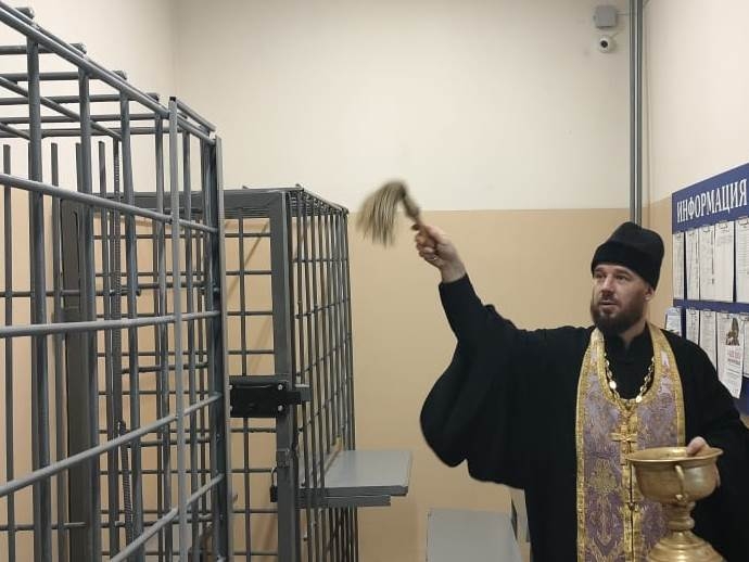 Священник проверил условия содержания граждан и соблюдение санитарных норм, а также провел беседы с арестованными. Отец Александр совершил молебен и освятил камерный блок и другие помещения подразделения.