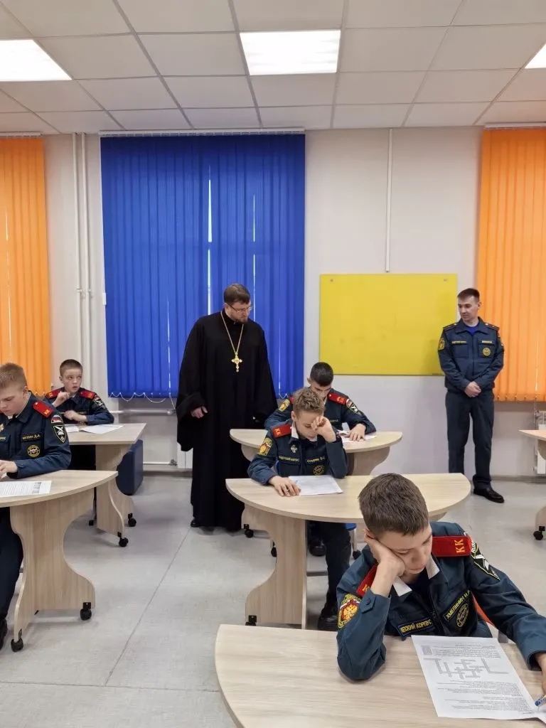 Мероприятие посетил благочинный Железногорского церковного округа, настоятель собора Архангела Михаила города Железногорска протоиерей Роман Нещерет. Священник обратился к участникам с приветственным словом, в котором отметил значимость изучения православной культуры для формирования национального самосознания и сохранения исторических традиций России. Отец Роман благословил школьников и пожелал им успехов в прохождении на следующий этап олимпиады.