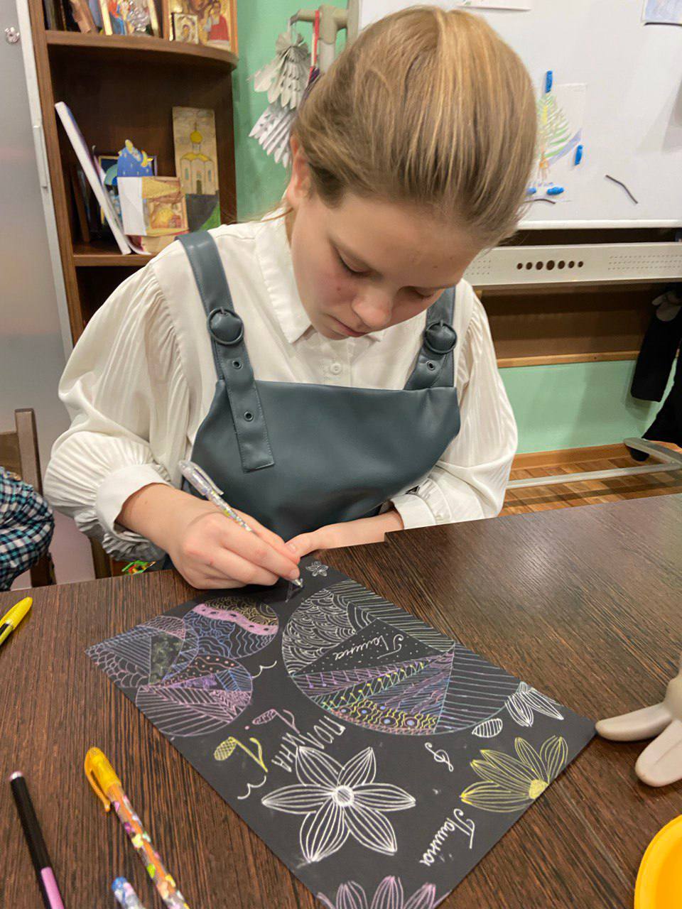 23 ноября в воскресной школе при церкви Введения во храм Пресвятой Богородицы в Берёзовке состоялось творческое занятие по рисованию в технике «зендудлинг».