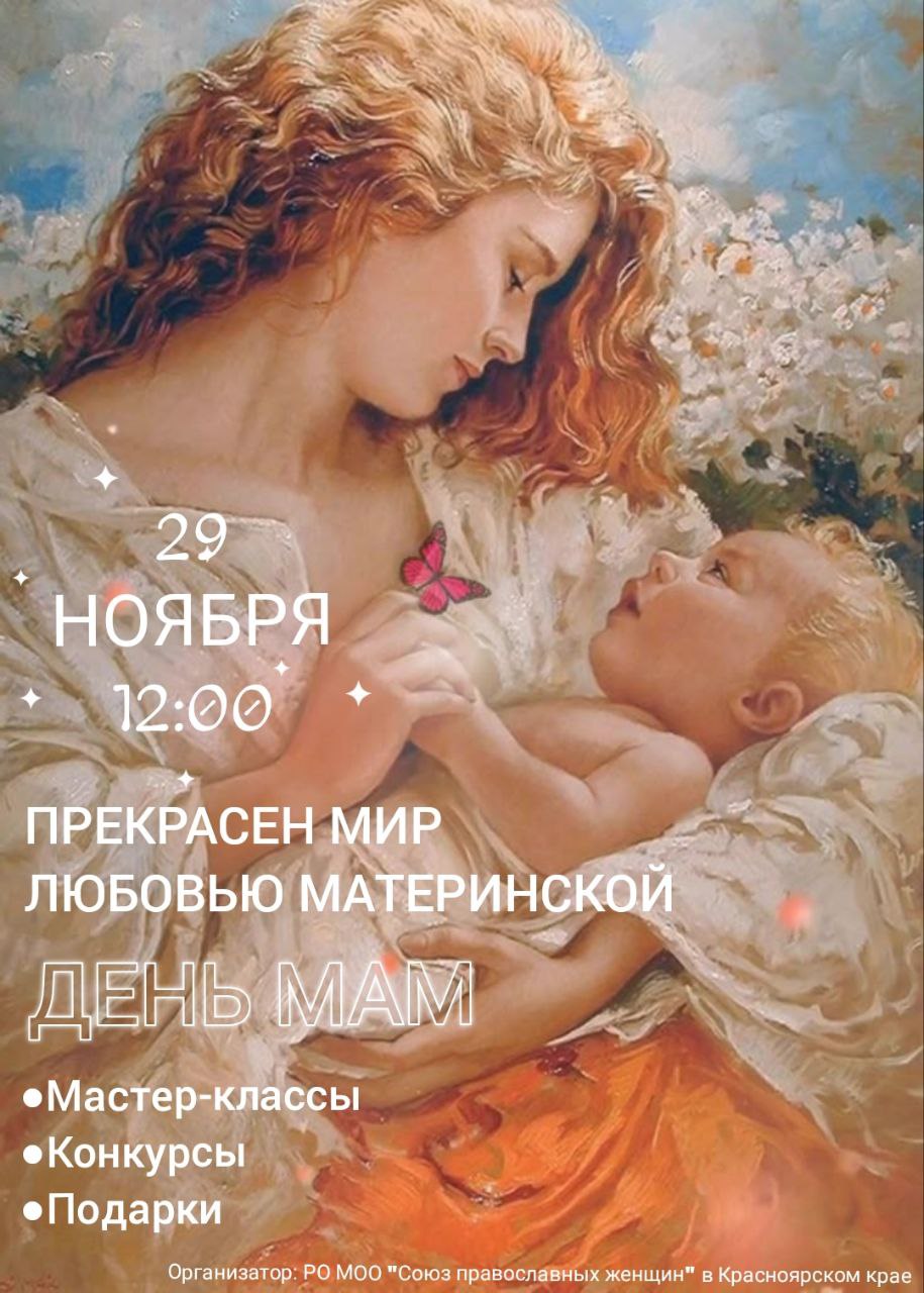 29 ноября в визит-центре «Покровский», у часовни великомученицы Параскевы Пятницы в Красноярске, состоится праздничное мероприятие, приуроченное ко Дню матери.
