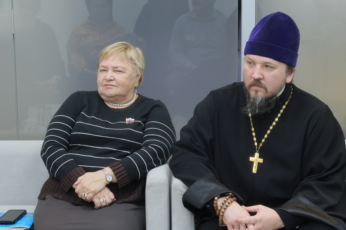 На встрече также присутствовали первый заместитель губернатора Сергей Пономаренко, министр социальной политики региона Ирина Пастухова, руководитель филиала фонда «Защитники Отечества» Александр Украинцев и помощник начальника ГУФСИН по работе с верующими, благочинный тюремных храмов Красноярской митрополии, настоятель храма священномученика Амфилохия города Красноярска иерей Родион Петриков.