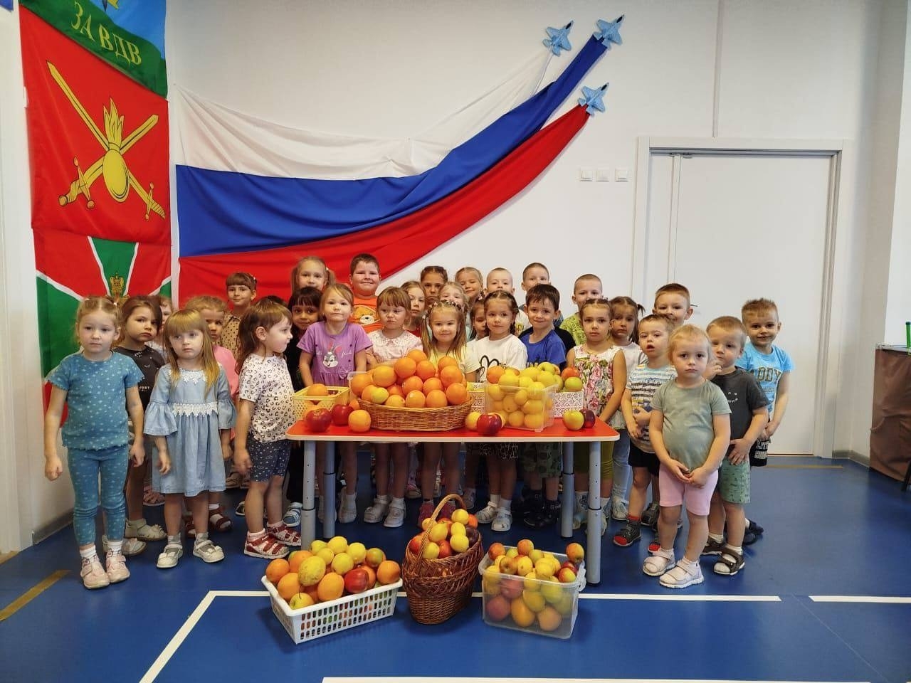 Воспитанники «Детский сад комбинированной направленности №7» и «Детский сад комбинированной направленности №8» собрали для военнослужащих фрукты — яблоки, апельсины и лимоны. Теперь волонтёры приступают к переработке, чтобы изготовить для бойцов полезные яблочные чипсы и витаминные цитрусовые напитки. Также активное участие приняли учащиеся, родители и педагоги МАОУ «Гимназия №1» города Сосновоборска.
