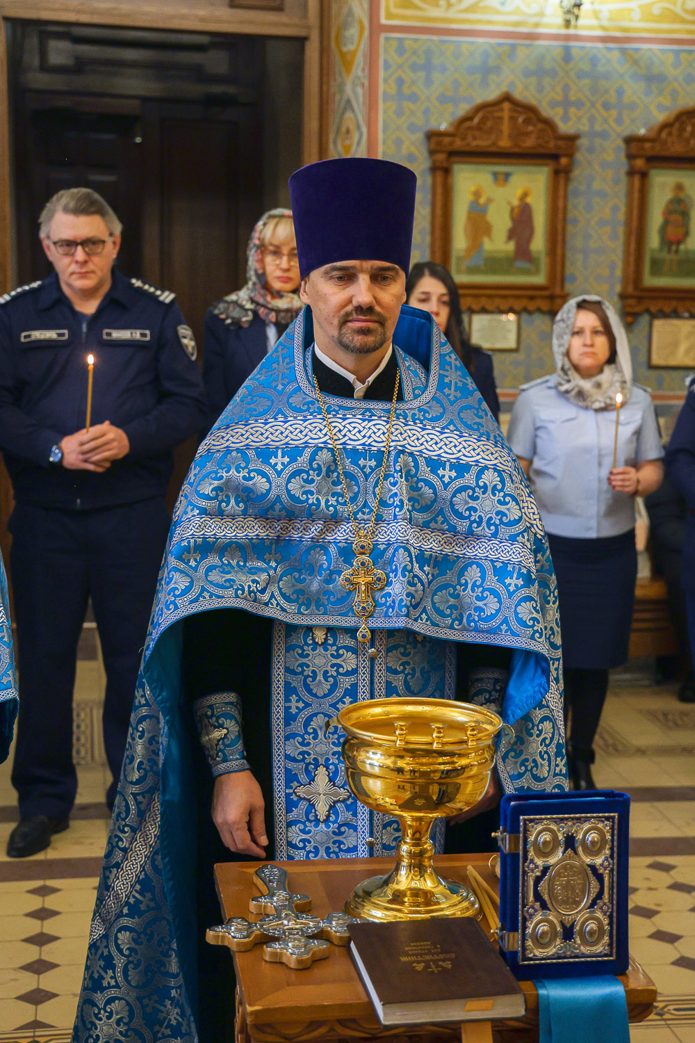 По завершении молебна отец Николай окропил всех присутствующих святой водой и обратился к ним с пастырским словом, в котором подчеркнул важность их служения и необходимость духовной поддержки в ответственной работе.