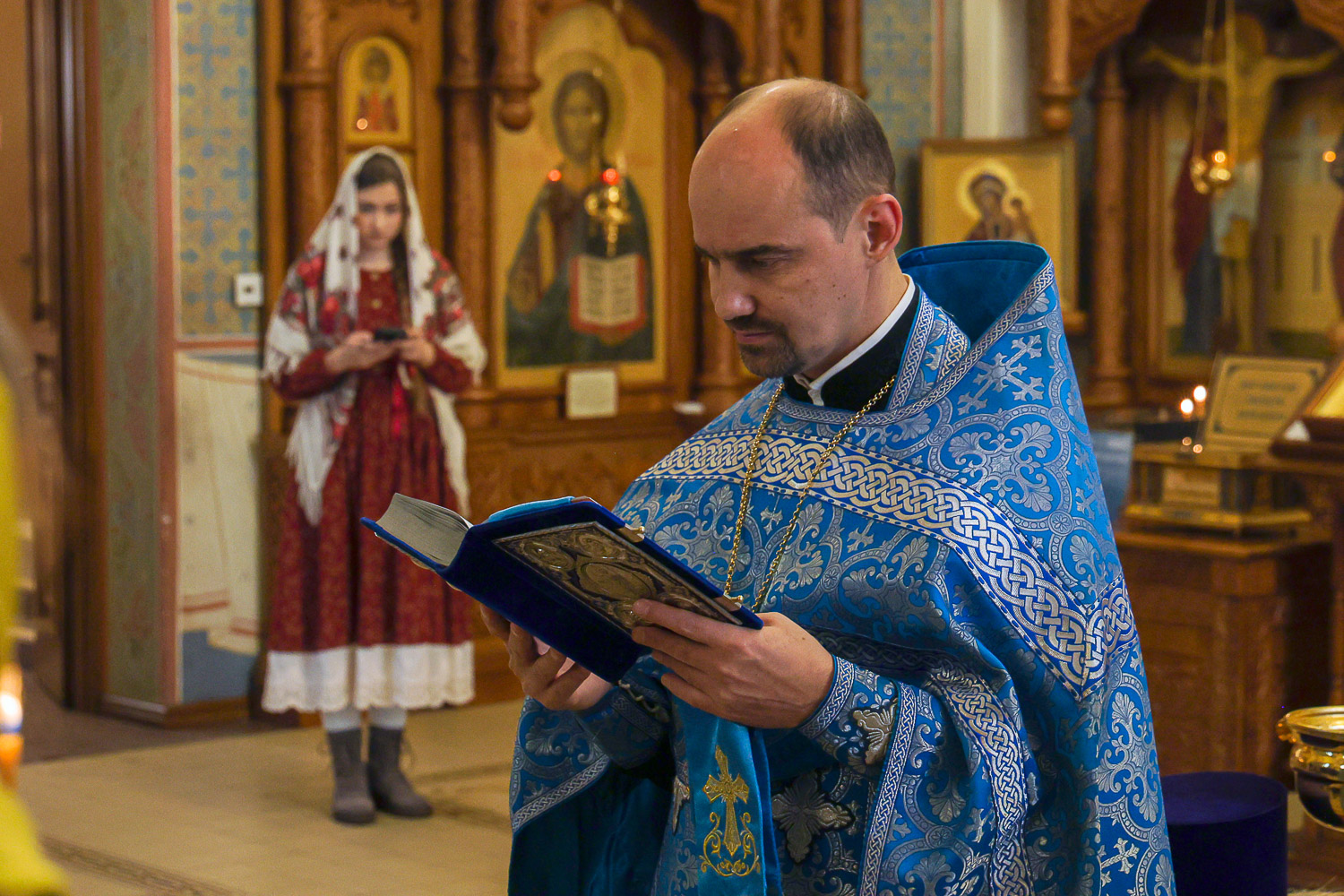 Богослужение совершил настоятель храма Иоанна Предтечи и храма праведных Иоакима и Анны протоиерей Николай Ши-кэ-мин.