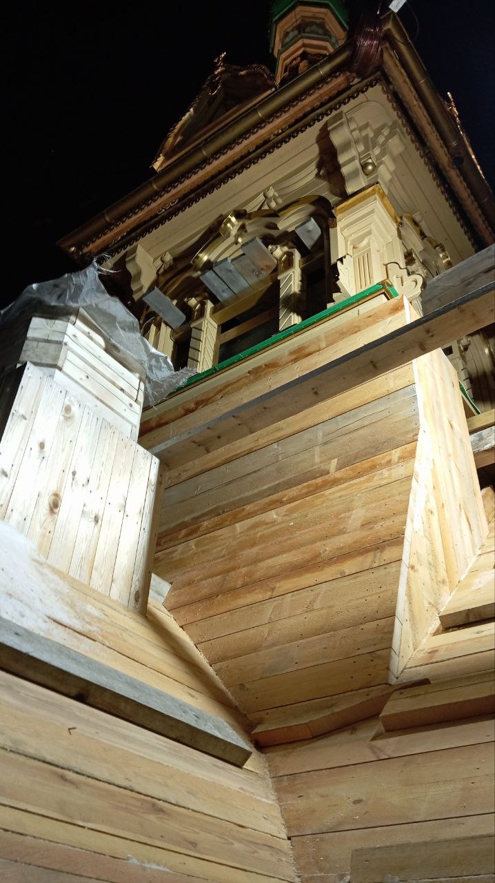 В настоящее время ведётся установка стропильной системы и монтаж обрешётки крыши. Значительная часть здания уже обрела законченный вид — колокольня полностью обшита с трёх сторон, что придаёт храму целостный архитектурный облик. Строительные работы продолжаются в плановом режиме.