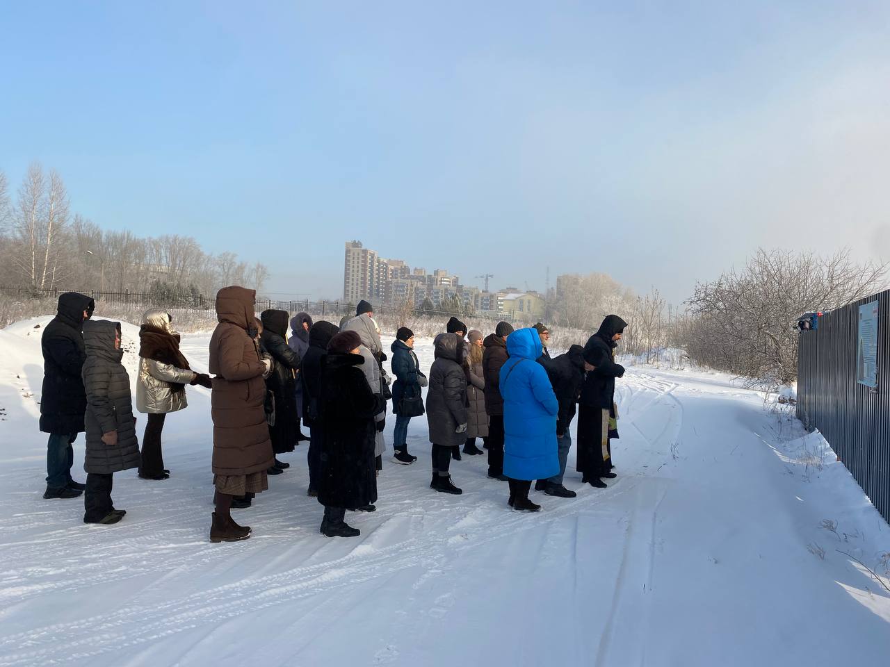 Мероприятие началось с соборной молитвы о здравии и благополучном возвращении всех защитников Отечества. Затем верующие, держа в руках иконы и хоругви, прошли крестным ходом вокруг храма, испрашивая у Господа защиты и укрепления для бойцов и их семей.