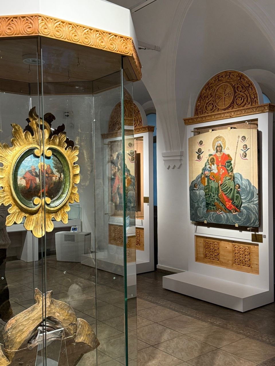 Основной целью поездки стало знакомство с выставкой «Икона Енисейского письма», открывшейся в Троицкой церкви города Енисейска. В экспозиции представлены произведения церковного искусства XVII–XX веков, включая отреставрированные иконы, образцы деревянной резьбы и скульптуры, а также реконструкции древних иконостасов. За год реставрационных работ для проекта было восстановлено 17 икон, всего на выставке экспонируется более 50 предметов.