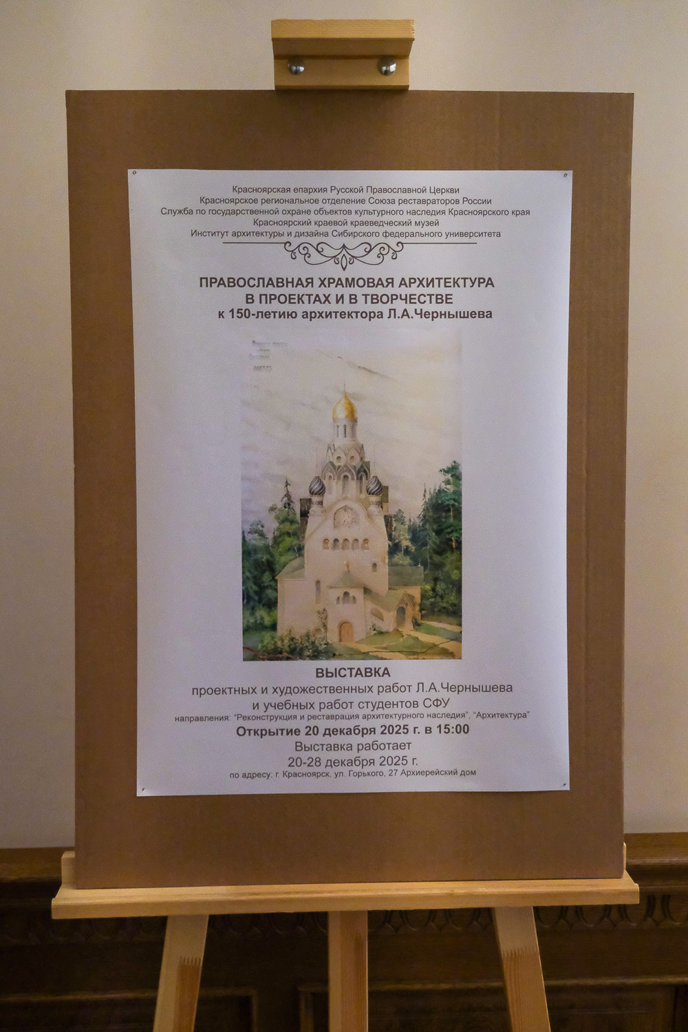 20 декабря в Архиерейском Доме Красноярска состоялось торжественное открытие выставки, посвящённой 150-летию красноярского архитектора Леонида Чернышёва.