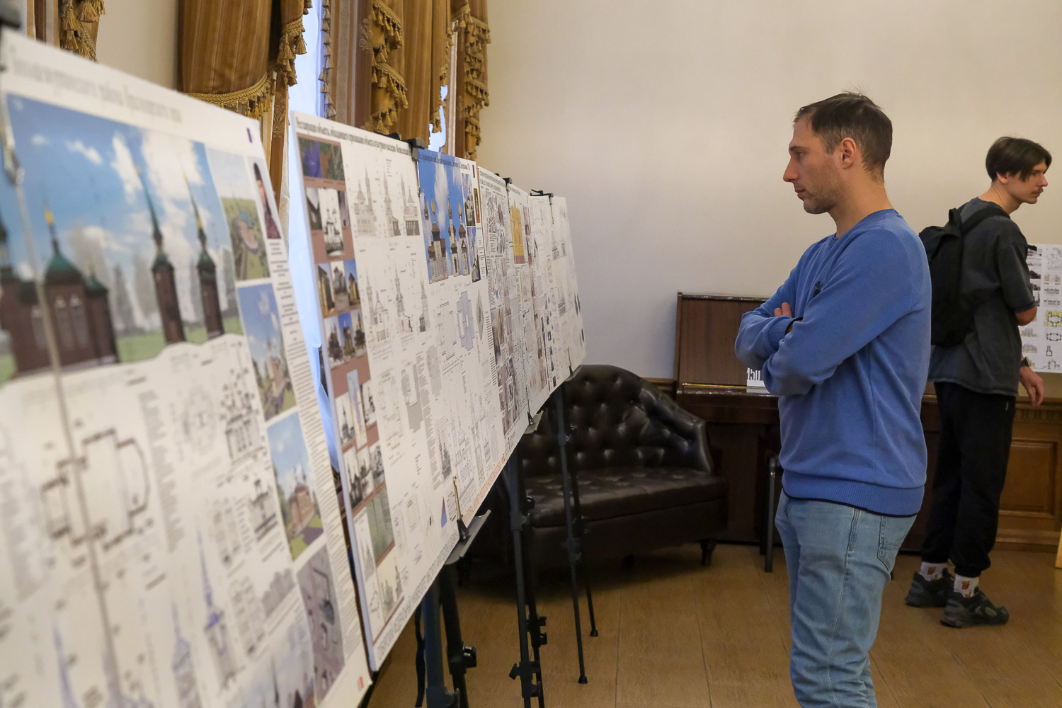 Экспозиция включает проектные и художественные работы известного архитектора, а также дипломные и курсовые проекты студентов-архитекторов Сибирского федерального университета направлений «Архитектура» и «Реконструкция и реставрация архитектурного наследия».