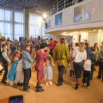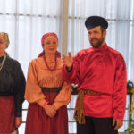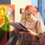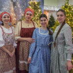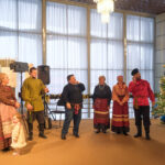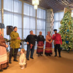 На втором этаже участников ёлки приветствовал пением народных рождественских песнопений и праздничными играми фольклорный ансамбль «Живая старина».