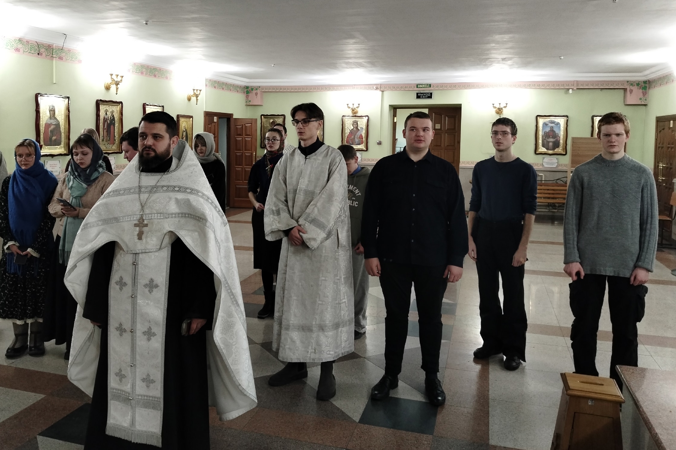 Участники молодёжного братства «СПАС» и другие верующие собрались на молебен святой покровительнице студентов. В молитве они просили помощи в учении, дарования рассудительности, терпения и Божиего благословения на предстоящие учебные труды и экзамены.