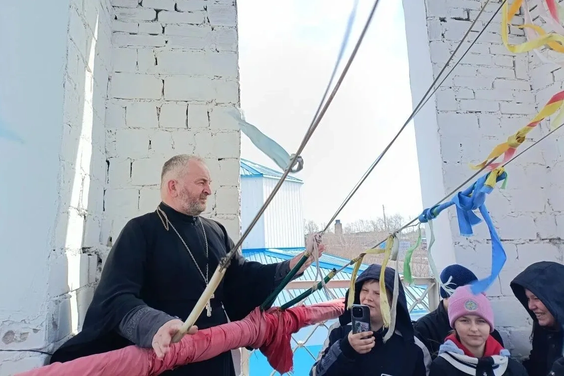 Также ребята поднялись на колокольню, где узнали о значении колокольного звона и под руководством отца Владимира смогли попробовать себя в роли звонарей.