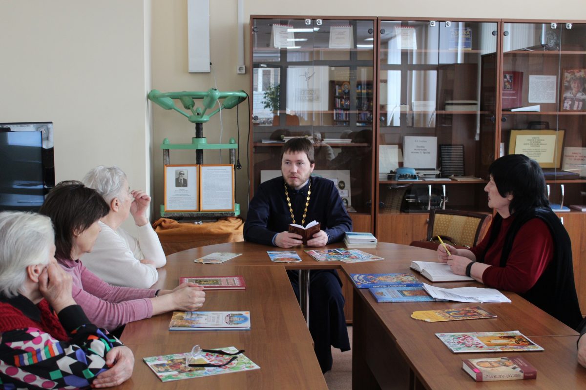 6 апреля руководитель Миссионерского отдела Красноярской епархии, благочинный Красноярского окружного благочиния, настоятель Трёхсвятительского храма Красноярска иерей Василий Вершинский встретился с участниками Евангельского кружка в Красноярской краевой специальной библиотеке-центре социокультурной реабилитации инвалидов по зрению