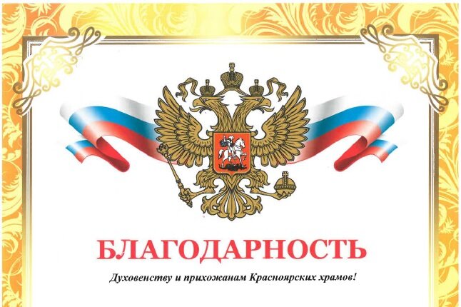 В Красноярскую епархию передано благодарственное письмо для духовенства и прихожан